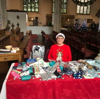 Joanna Dingle, churchwarden and volunteer, runs the market stall with the help of volunteers Brenda, Jan, Rosemary, June, Sue and Peter. She said: “I support the Christmas Tree Festival for the joy it gives to the community.” In between jobs, Peter Dingle was asked why he volunteers at the festival. He said: “For the beauty of the trees.”