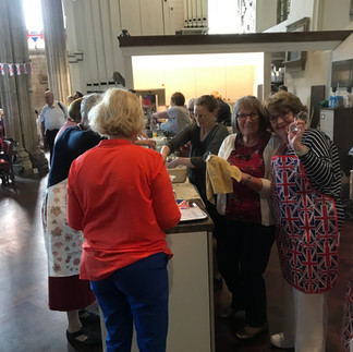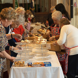 Flags and bunting greeted 150 people as they came to church for the Platinum Jubilee indoor street party on Thursday June 2.